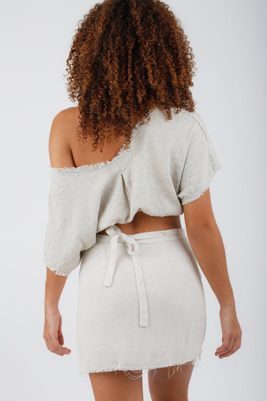 Top Eugenia Bicolor Mostaza y Crudo